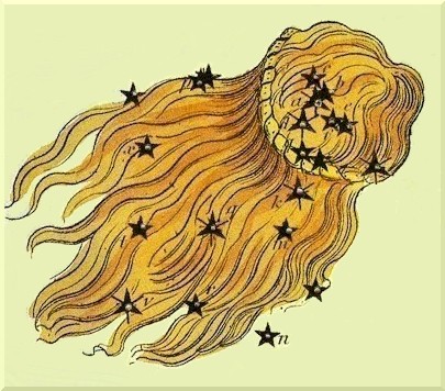 The constellation of Coma Berenices also gives us some important clues about this area of the sky. The symbol of hair conjures up many images and mythical stories. In some traditions hair symbolizes our connection to personal power, life force, and strength, i.e. Samson. In the story of Rapunzel her hair symbolized a link to the outside world, and the sacred masculine (Prince) who intended to free her from her prison tower. Other traditions see hair as a symbolic link to the power of thought, spiritual knowing and inspiration, and higher powers. The black hair of Kali symbolizes Time, the matted hair of Siva symbolizes the ascetic, the curled hair of the Buddha symbolizes mastery of life force in a tranquil and serene state. (Sourced from An Illustrated Encyclopaedia of Traditional Symbols by J.C. Cooper)