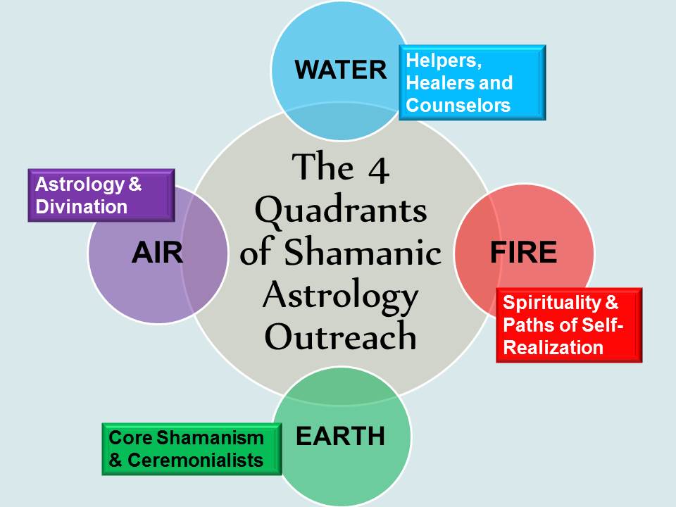 In recent years the Shamanic Astrology Mystery School (SAMS) has been experiencing unprecedented growth, including expansion of the governing council. As the school is approaching its first waxing Saturn square since becoming a 501 (c) 3 educational organization, it is timely to inaugurate what the SAMS Council has identified as the Four Quadrants of Shamanic Astrology Outreach.